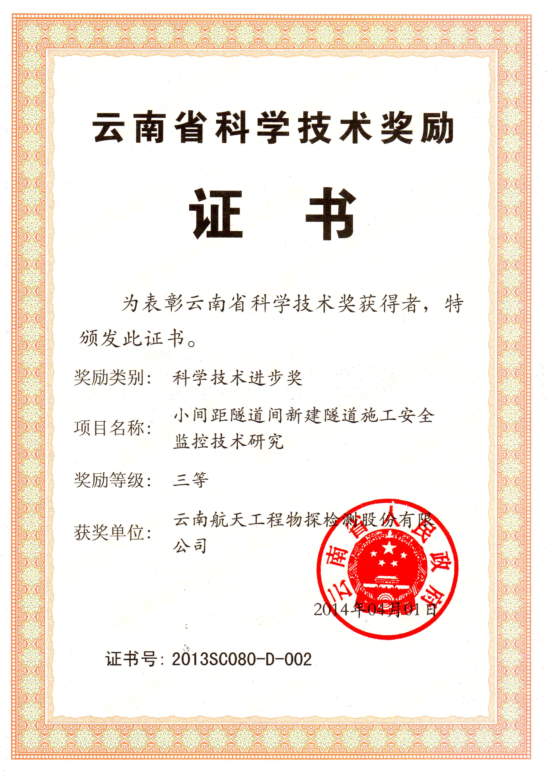 云南省科技進(jìn)步三等獎(jiǎng)