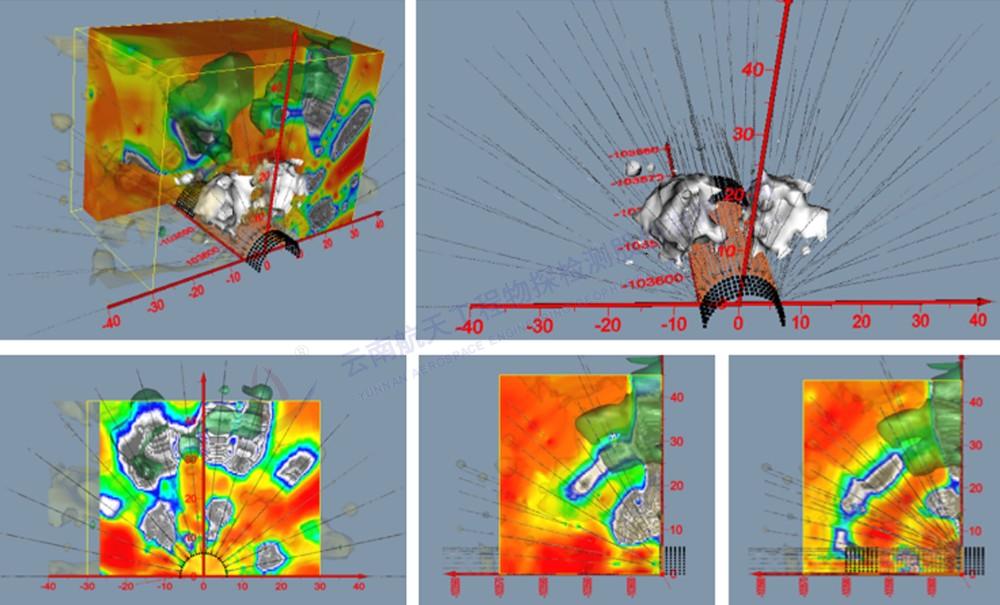 2017年9月,某在建高速公路隧道塌方,我公司利用綜合三維超前預報技術探明了洞內坍塌堆積體范圍、洞頂坍腔空間三維形態,為救災、處治提供了重要依據。